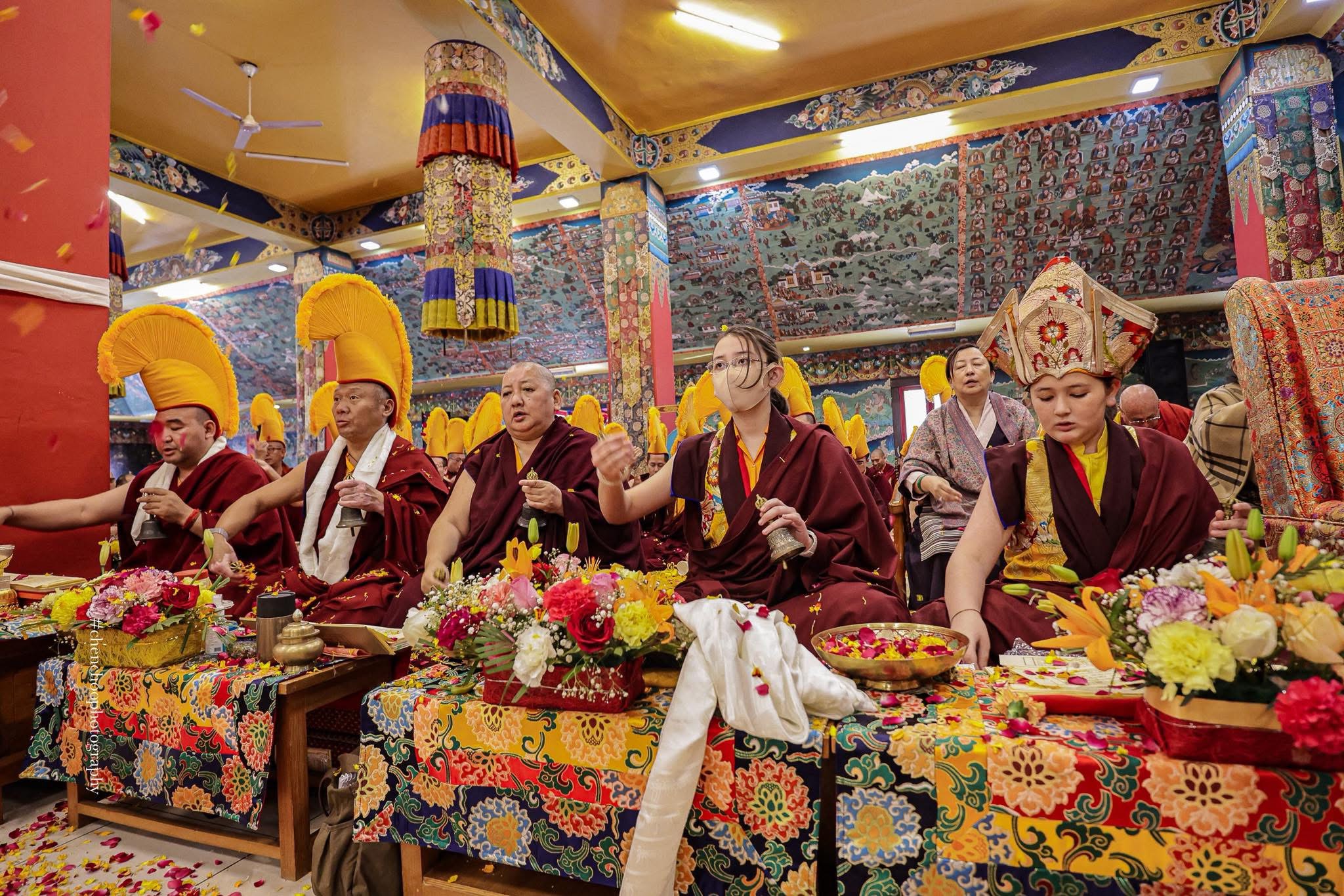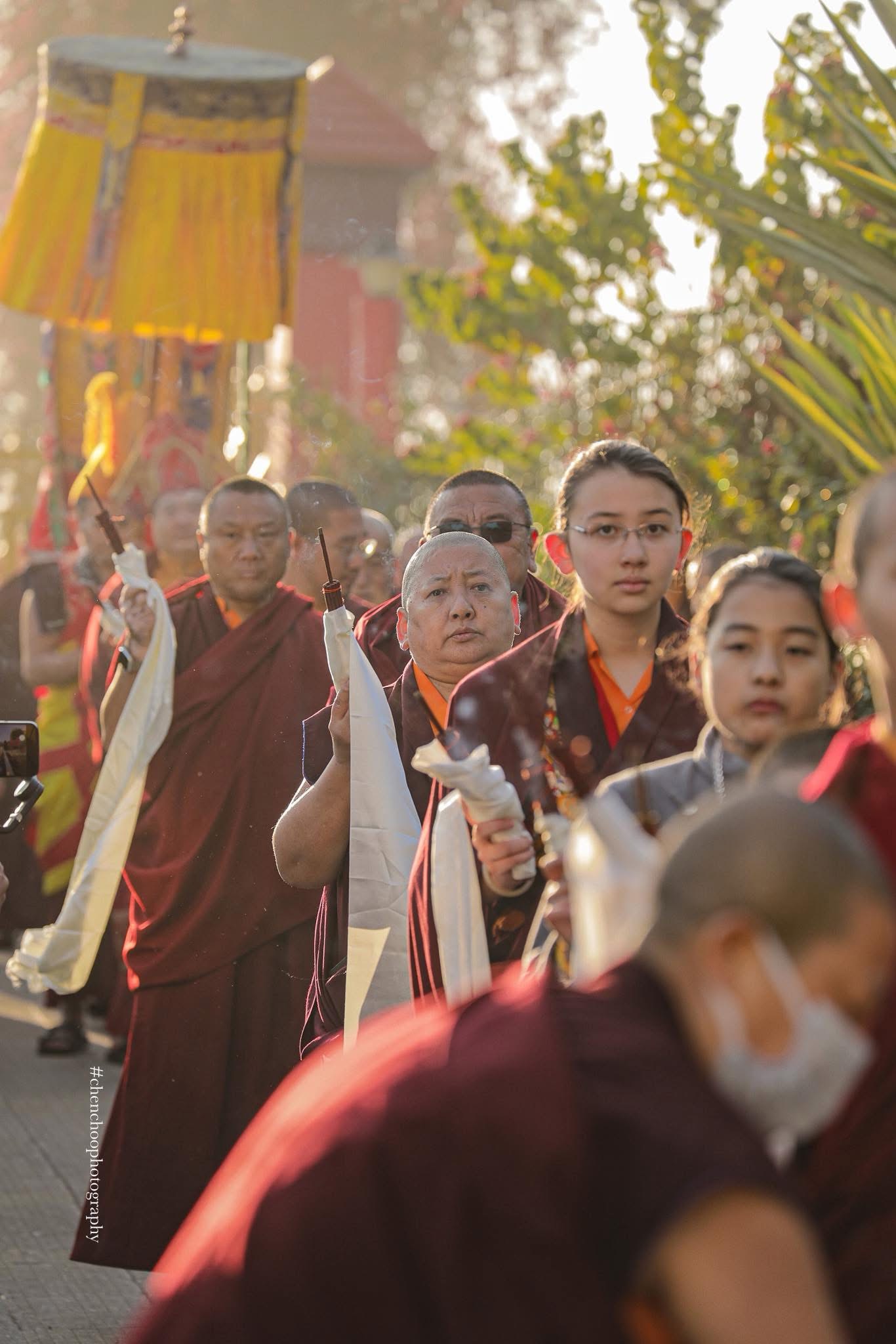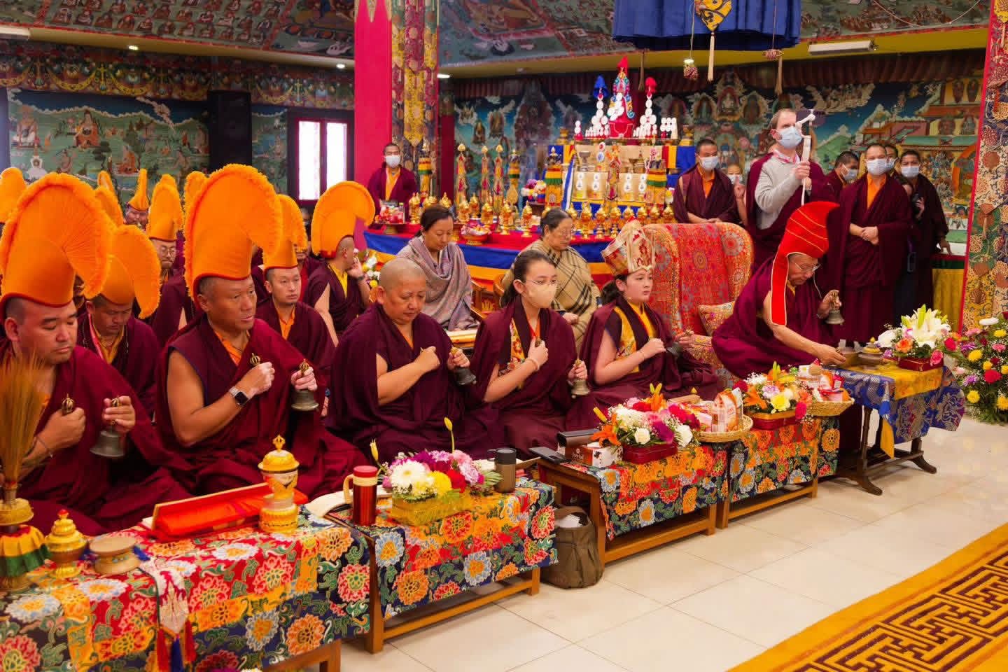 In late July and early August of 2025, Kyabje Mindrolling Jetsün Khandro Rinpoche, Vajravarahi in person, graciously visited our center with a glorious entourage of Khenpos, Lopöns, monks, and nuns from Mindrolling Monastery. From July 31st through August 3rd, Kyabje Mindrolling Jetsün Khandro Rinpoche kindly bestowed empowerment and led the entire sangha in a Minling Dorsem drubchö, a sacred three-day intensive practice ceremony consecrating the Great Enlightenment Stupa.